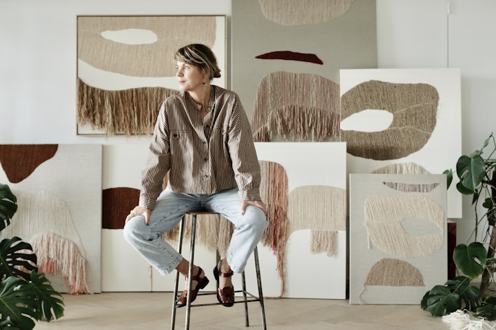 Tine Otto holds a Master’s degree from the Royal College of Art in London, where she developed a profound understanding of art. Inspired by the beauty of nature and its organic forms, her work reflects a tactile language that encompasses intricate structures and patterns. Tine has a particular fondness for the art of embroidery, viewing it as a medium through which she can express her creativity. Her artistic journey is fueled by a strong passion for exploring structures, colors, and shapes. Influenced by iconic figures such as Henry Moore, Barbara Hepworth, Lucio Fontana, Eames, and Arne Jacobsen, Tine embraces the essence of modernism in her creations. Working exclusively with natural fibers, she sources materials spun by her mother-in-law and dyes them using plant-based colors derived from avocados, nuts, leaves, and more. This commitment to natural elements adds a unique touch to her pieces. Tine’s collection features a series of meticulously hand-embroidered fiber artworks and decorative pieces, each a testament to her dedication to modernism and her love for organic shapes inspired by nature.